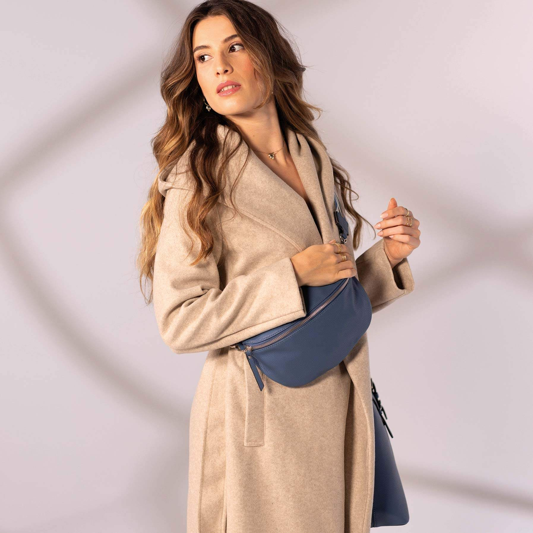 Ľadvinka Paola z džínsovej modrej farby 11460 LUZAKA.  So svojím zaobleným tvarom a veľkým vnútorným vreckom na zips nahradí kabelku, aby ste mohli nosiť svoje malé veci štýlovo.
