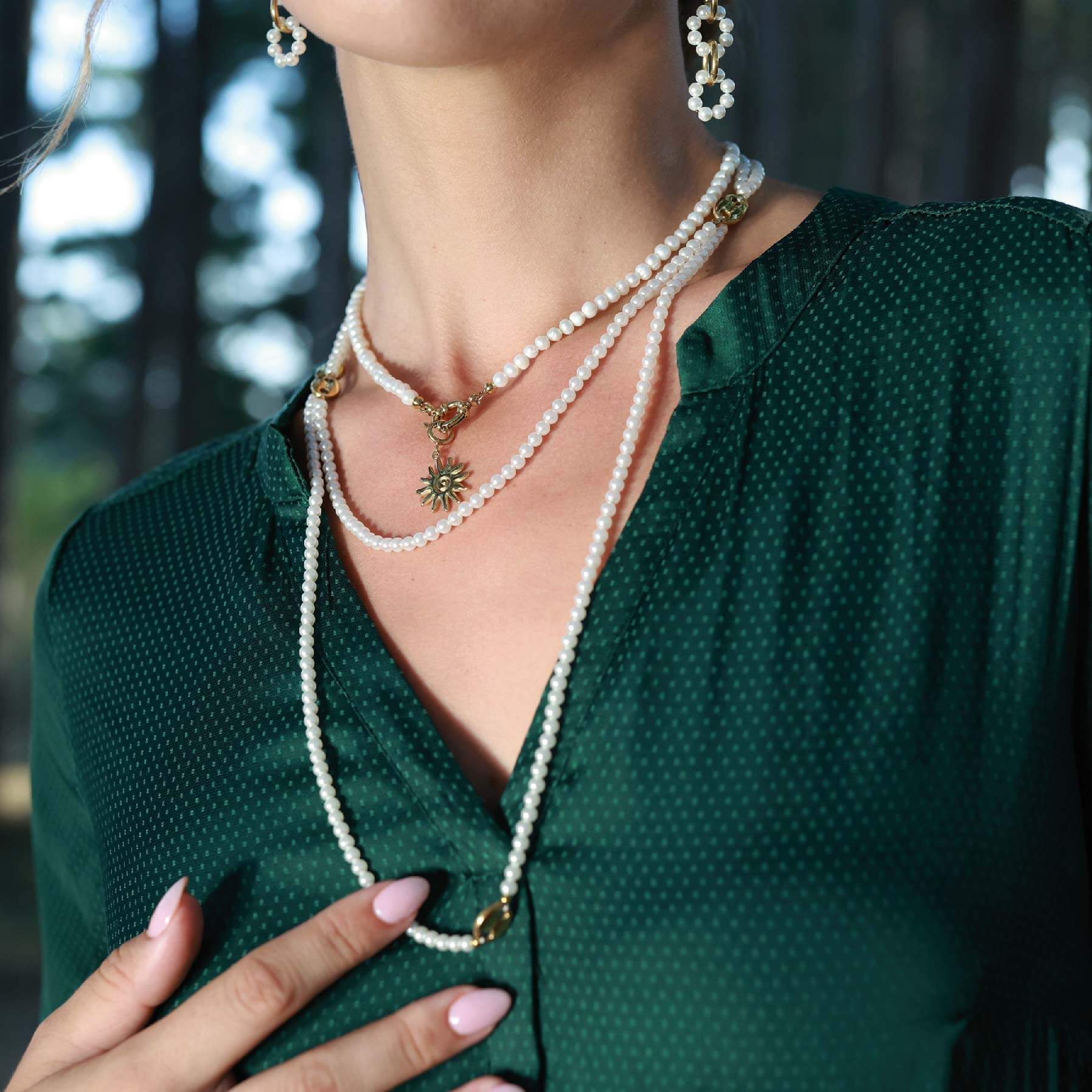 Tento dlhý a elegantný Perlový náhrdelník rozžiari vaše outfity svojimi jedinečnými odleskami. Noste ho samostatne alebo vo vrstvách pre moderný a sofistikovaný vzhľad.